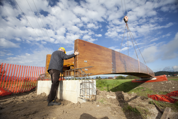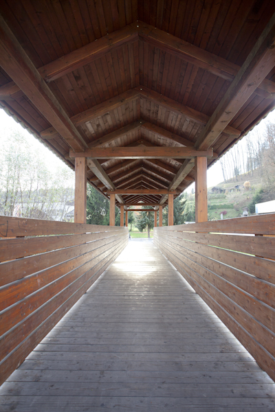Most Krmelj / 2003 / Raspon 14,0 m širina2,06 m / Ravni lep. nosilci / Janez Štupnik, univ. dipl.inž. Grad.