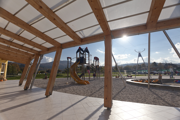 Jahalnica Draga / Ig / 2008 / šport.obj.in šole / 900 m2 / Tročlenski ločni nosilci / A. Černič, M. Osterman